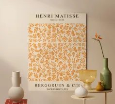 Un motivo ispiratore di forme astratte di foglie in un caldo arancione su uno sfondo color crema. Questo design minimalista e moderno aggiunge un'atmosfera elegante e artistica a qualsiasi stanza. Perfetto per chi cerca motivi naturali in un'interpretazione contemporanea. Ideale per prodotti come murales, cuscini, tazze o cover per cellulari: un'attrazione per gli amanti dell'arte e del design.