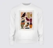 Uccelli stilizzati disposti in una tranquilla composizione geometrica. I colori caldi della terra e le forme semplici creano un equilibrio tranquillo e un ritmo gentile.