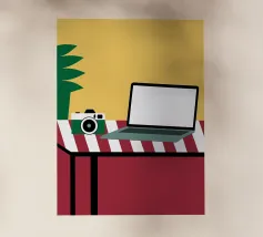 Scatenate la vostra creatività! Illustrazioni ispirate a fotocamere e laptop. Design perfetto per blogger, fotografi, videografi e tutti i creatori di contenuti.