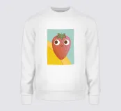 Allegra illustrazione con una simpatica fragola dal dolce sorriso, che irradia felicità e freschezza.