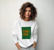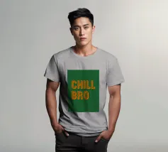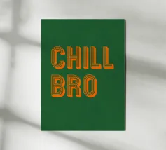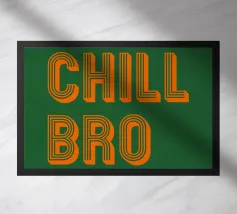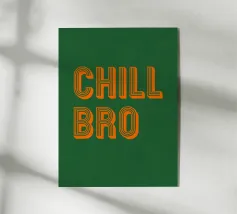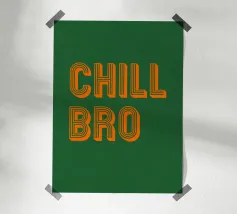 "Chill Bro" - un'allegra espressione tipografica che celebra l'amicizia e le vibrazioni rilassate. Perfetto come poster verde-arancio di tendenza per i vostri interni!
