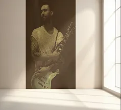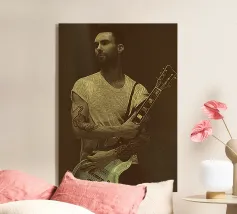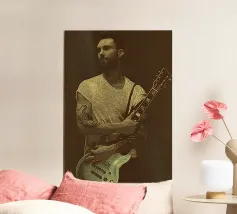 Un acquerello retrò che ritrae Adam Levine nel suo momento più intenso e passionale sul palcoscenico