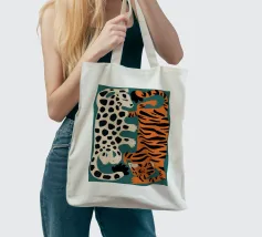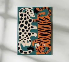 Una composizione audace e grafica che fonde insieme i motivi di una tigre e di un leopardo. Lo stile è moderno, potente e alla moda.