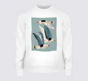 Poster grafico moderno con tre uccelli stilizzati in aree di colore armoniose. Il design combina forme chiare, toni di colore retrò ed eleganza minimalista - ideale per gli amanti dell'arte animale moderna e del design scandinavo. Questo motivo conferisce leggerezza e movimento a qualsiasi ambiente. Perfetto come poster, tela o stampa fine art per il soggiorno, l'ufficio o lo studio.
