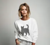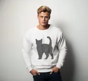 L'ombra di un gatto pieno di vita: Questo motivo gioca con la tensione tra una silhouette chiara e un disegno organico a labirinto. Lo stile ricorda la line art di Keith Haring, ma è più sottile, più giocoso, quasi meditativo. Le innumerevoli microforme invitano a soffermarsi, creando dinamismo in una situazione di stasi. Una dichiarazione visiva per gli spazi creativi e gli amanti dei gatti, in audace equilibrio tra ordine e caos.