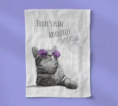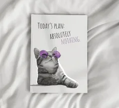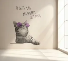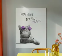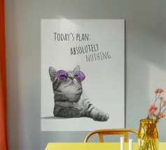 Questo spiritoso motivo a gatto è perfetto per chi celebra il dolce far niente o semplicemente ha bisogno di un piccolo promemoria per rilassarsi di più nella vita di tutti i giorni. Il simpatico gatto con gli occhiali da sole color porpora dona immediatamente buon umore a qualsiasi ambiente. Il design moderno e minimalista colpisce per le sue linee chiare, i colori tenui e l'accento di colore specifico negli occhiali; elegante, attento alle tendenze e meravigliosamente semplice. Un'attrazione per tutti coloro che amano l'umorismo, il design e i gatti o che vogliono semplicemente godersi una giornata pigra.