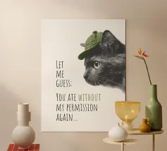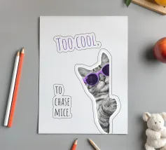 Questa gatta sa quello che vale e dare la caccia ai topi non è certo nei suoi programmi! Con la sua posa disinvolta e gli occhiali da sole viola, è il simbolo perfetto di serenità, stile e una buona dose di fiducia in se stessa. Il design moderno e minimalista combina una precisa illustrazione in bianco e nero con un chiaro accento di colore viola. Questa combinazione appare sofisticata, attenta alle tendenze e giocosa allo stesso tempo; perfetta per chi unisce l'umorismo allo stile. Un must per i fan dei gatti, gli amanti del design e tutti coloro che sanno cosa vogliono: La vera coolness non ha bisogno di sforzi.