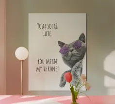 Questa gatta sa quello che vale e dare la caccia ai topi non è certo nei suoi programmi! Con la sua posa disinvolta e gli occhiali da sole viola, è il simbolo perfetto di serenità, stile e una buona dose di fiducia in se stessa. Il design moderno e minimalista combina una precisa illustrazione in bianco e nero con un chiaro accento di colore viola. Questa combinazione appare sofisticata, attenta alle tendenze e giocosa allo stesso tempo; perfetta per chi unisce l'umorismo allo stile. Un must per i fan dei gatti, gli amanti del design e tutti coloro che sanno cosa vogliono: La vera coolness non ha bisogno di sforzi.