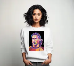 Lionel Messi in stile WPAP è un ritratto sorprendente e colorato del leggendario calciatore, creato utilizzando forme geometriche nitide e toni vivaci. Questo pezzo pop art cattura i tratti iconici e il carisma pacato di Messi, celebrando la sua grandezza attraverso l'audace linguaggio visivo di WPAP (Wedha's Pop Art Portrait).