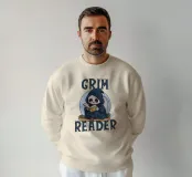 A little reaper sits before a tombstone, wrapped in his dark cloak, fully immersed in reading. The “Grim Reader” pun plays with the words reaper and reader, creating the perfect fusion between the dark and the literary. Perfect for lovers of books, clever humor and a touch of gothic aesthetic!