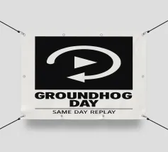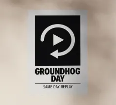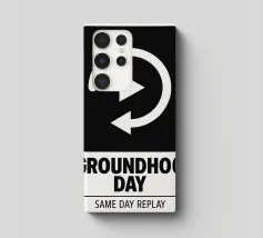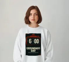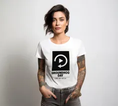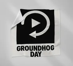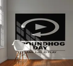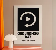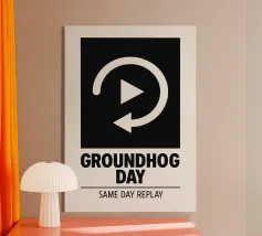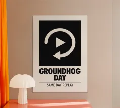 Stampa di Groundhog Day, Poster cinematografico alternativo, Bianco e nero, Arte murale minimale, Segno di replay, Ciclo del tempo, Stampe di alta qualità, Regalo per i fan del cinema