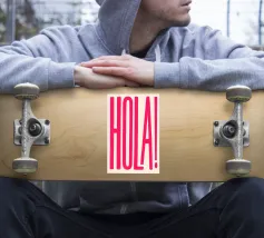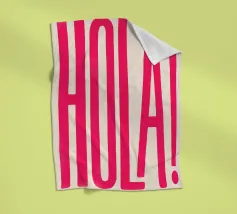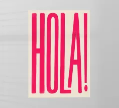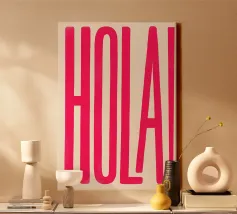 Ravvivate il vostro spazio con questa stampa audace e giocosa: "HOLA!", un augurio tipografico in spagnolo di colore rosa vivace che emana energia, divertimento e fascino culturale.