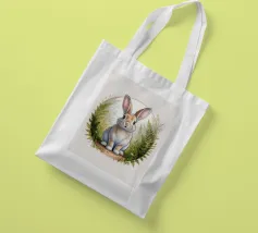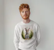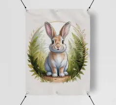 Simpatico coniglietto "Hoppel" dai colori tenui disposto in cerchio. Uno dei sei abitanti della foresta. Stile: Acquerelli
