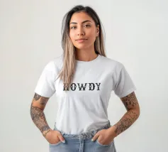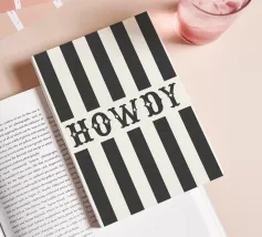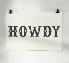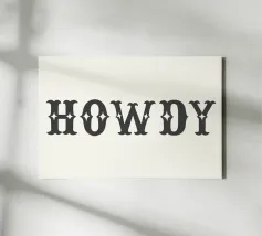 Questa stampa tipografica in bianco e nero è un'opera minimalista, che ripropone un audace saluto occidentale. Con scritte disegnate a mano in stile vintage e un look pulito e ad alto contrasto, è perfetta per gli interni monocromatici, per le stanze dei dormitori o per chiunque ami l'arte grafica con un pizzico di fascino del Sud.