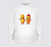 Due simpatici corndog, con tanto di sorrisi alla senape e al ketchup, sono allegramente in piedi l'uno accanto all'altro con la frase "Mi piace quando sei sdolcinato". Il design giocoso trasmette un messaggio umoristico e leggero.