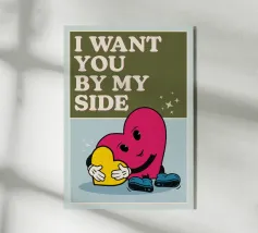 Il mio cuore è tuo e il tuo è mio" è forse il modo migliore per descrivere la simbiosi di affetto, amicizia e amore espressa in questa illustrazione a fumetti. Per grandi e piccini, per la camera dei bambini o per qualsiasi altra parete.