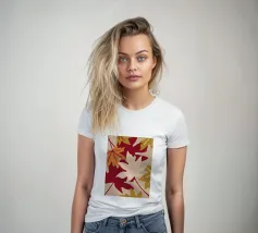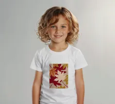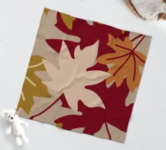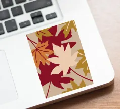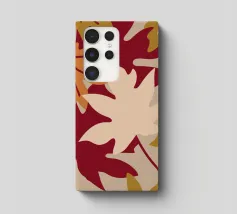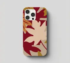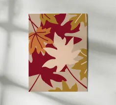 Un'illustrazione con foglie autunnali dai colori caldi come il rosso, l'arancione, il crema e il marrone chiaro. Questa illustrazione offre un aspetto confortevole e rilassante.