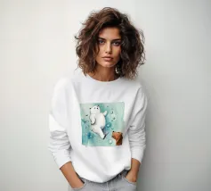 Questo dipinto raffigura un orso polare che si tuffa in acque scintillanti. Le bolle circondano l'orso mentre il sole splende luminoso, evidenziando la gioia e la libertà del momento.