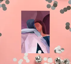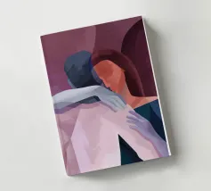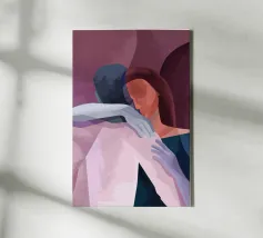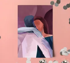 Illustrazione stilistica di un uomo e una donna abbracciati. I toni viola-blu creano un'atmosfera triste ma tranquilla.