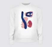 Una composizione astratta con forme audaci di colori primari blu, rossi e gialli che interagiscono per formare un volto o una figura surreale e decostruita.