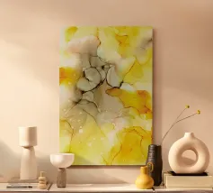 "Ink no.19" è un'opera luminosa a inchiostro alcolico che combina calore, energia e leggera trasparenza. Il mix di giallo solare, delicate tonalità beige e linee sottili crea una profondità organica che ricorda forme naturali, giochi di luce e strutture fluide. Questo disegno astratto dona luminosità e leggerezza moderna a soggiorni, cucine, spazi di lavoro creativi o interni minimalisti. Ideale per chi ama l'arte astratta, l'inchiostro ad alcool, le sfumature di colore morbide e l'arte murale contemporanea.