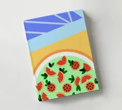 Questa illustrazione presenta un'insalata di pompelmo fresco con fette di pompelmo e foglie di menta. Il design minimalista e i colori vivaci sono perfetti per il design di un menu di cibo sano.