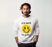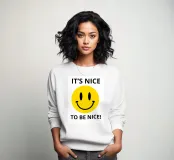 Una faccina gialla brillante è in primo piano e trasmette un messaggio positivo e allegro. Il testo recita: "È bello essere gentili!".