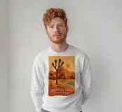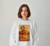 Tramonti infuocati, rocce rosse e le indimenticabili sagome degli alberi di Joshua. Questo poster riassume l'essenza cruda e mistica del deserto californiano. Uno stile forte, sia grafico che contemplativo