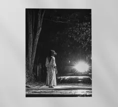 Sotto un cielo scuro, la pioggia cadeva dolcemente su Julien, solo in mezzo a una strada. Ogni goccia sembrava pesare sulle sue spalle, aumentando la malinconia che lo pervadeva. Fissava l'orizzonte scuro, cercando invano qualche segno di vita. La notte assorbiva i suoi pensieri e si sentiva abbandonato come il luogo desolato che lo circondava. All'improvviso, i fari di un'auto si accesero.