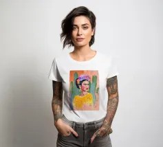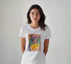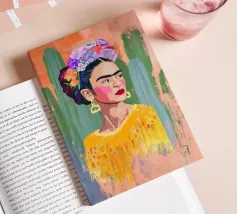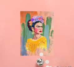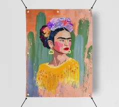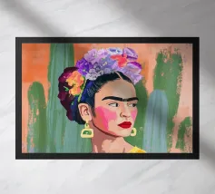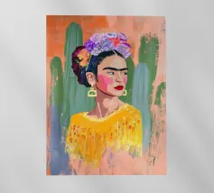 L'autoritratto di Frida Kahlo risplende in pennellate colorate e motivi floreali che incarnano la sua cultura messicana. Con i suoi cactus e i suoi colori vivaci, è diventata un'icona dell'arte moderna e del femminismo.