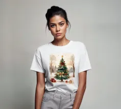 "L'albero di Natale nel Paese Magico" - Illustrazione festosa per il periodo natalizio Questo motivo disegnato con amore mostra un albero di Natale in un paesaggio invernale, con colori caldi ed elementi festivi. Le raffinate texture ad acquerello, i morbidi accenti di luce e i dettagli giocosi conferiscono all'immagine un'atmosfera accogliente e nostalgica. Perfetto per le decorazioni invernali, per la camera dei bambini o come regalo d'atmosfera durante il periodo dell'Avvento: un'opera d'arte che fa risplendere il Natale.