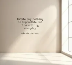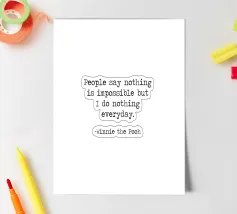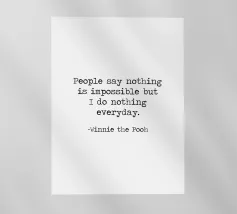 "La gente dice che nulla è impossibile, ma io non faccio nulla tutti i giorni!". - Divertente umoristico Winnie the Pooh famoso Winnie The Pooh A. A. Milne Citazione minimalista in bianco e nero macchina da scrivere tipografia word art famoso detto.