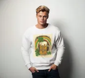 Divertente immagine del giorno di San Patrizio che dice "Siamo fortunati" con trifogli e arcobaleno