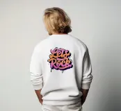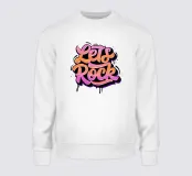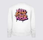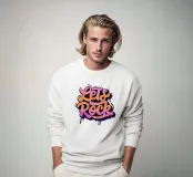 Un hand lettering mega-cool con scritte groovy in stile casual-rock. Facciamo rock. Facciamo rock. Affrontiamo questo. Divertimento, energia, entusiasmo, vigore, grinta, energia positiva, dinamismo: tutto questo è racchiuso in questo grande lettering. Con questo motivo nei colori rosa, arancione, nero e viola, avrete la garanzia di un aspetto forte. Un motto divertente. Una dichiarazione di stile.