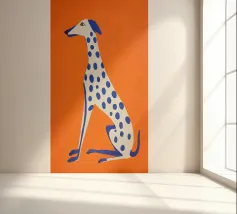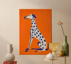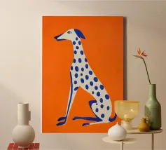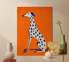 Questo poster accattivante mostra un cane stilizzato con puntini blu su uno sfondo arancione brillante: un vero e proprio richiamo per gli ambienti moderni. Lo stile grafico e minimalista con colori decisi rende il quadro ideale per il soggiorno, il corridoio, l'ufficio o lo studio. Perfetto per chi ama i disegni audaci e i motivi animali. Moderno, minimalista e pieno di carattere.