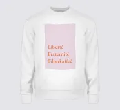 🇫🇷☕ Liberté, Fraternité ... Filterkaffée! Questo simpatico design è una reinterpretazione in chiave ironica del famoso motto francese, con una speciale aggiunta di caffeina. La classica frase tricolore viene spezzata in modo affascinante dall'aggiunta di "Filterkaffée", con le ultime lettere scritte volutamente in stile tedesco con l'accento sulla "e" - un riferimento ironico alla fusione culturale franco-tedesca.