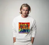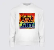 Rosso vivo, giallo brillante e il messaggio: "La vita è migliore con l'arte" Arte che motiva! Un'opera che rende visibile la gioia di vivere.