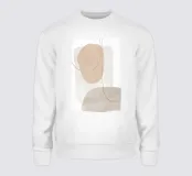Arte murale astratta contemporanea caratterizzata da forme organiche morbide di colore beige con delicati elementi di linee nere su sfondo bianco in stile minimalista.
