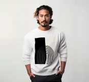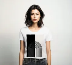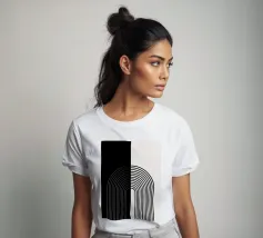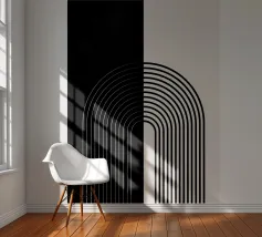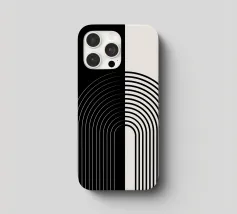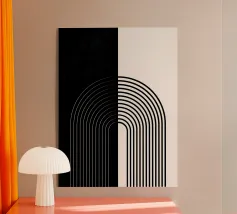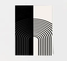Un design espressivo in bianco e nero a contrasto che forma un'elegante forma a semicerchio con linee chiare e simmetriche. Questo motivo minimalista aggiunge un carattere moderno e senza tempo a qualsiasi ambiente. Ideale per opere d'arte da parete, tazze, custodie per cellulari o cuscini, questa opera d'arte si inserisce perfettamente in un ambiente elegante e raffinato. Un'ispirazione per gli amanti del design moderno e geometrico e un'ottima idea regalo.