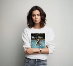 Una scena allegra: un lama che galleggia in una piscina, indossando felicemente un anello da bagno. Luminoso, divertente e inaspettato, questo disegno aggiunge umorismo e spirito estivo ai bagni, alle camere dei bambini o a qualsiasi altro spazio che abbia bisogno di un sorriso.