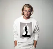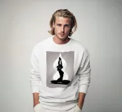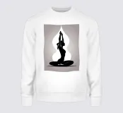 La silhouette di una donna seduta in meditazione con l'energia bianca che scorre intorno a lei. Il contrasto tra luce e buio riflette la consapevolezza e la chiarezza spirituale: perfetto per gli studi di yoga o per le case serene.