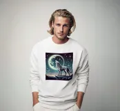 Una splendida illustrazione in stile cartoon di un maestoso lupo argentato che ulula alla luna crescente sotto un cielo stellato. Il lupo, con la sua pelliccia scintillante, si erge fiero su una sporgenza rocciosa, illuminata dalla luce della luna. La scena ĆØ ambientata in un cielo blu e nero profondo, pieno di stelle scintillanti, che evoca un senso di magia e serenitĆ . La luna crescente brilla dolcemente, completando la presenza eterea del lupo. Alberi ombrosi e colline lontane completano l'atmosfera tranquilla e mistica.