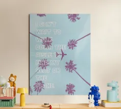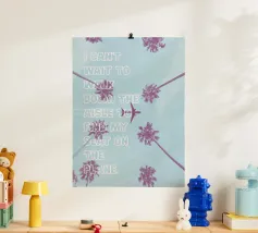 Questo poster di viaggio umoristico è perfetto per chi ama gli aerei e la voglia di viaggiare. La frase "Non vedo l'ora di camminare lungo il corridoio per trovare il mio posto sull'aereo" unisce l'amore per i viaggi a una strizzatina d'occhio. Le palme, il cielo e l'aereo conferiscono un tocco estivo, ideale come regalo o decorazione murale per gli appassionati di viaggi.