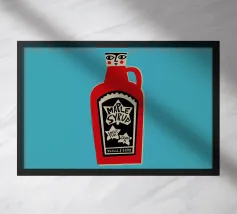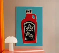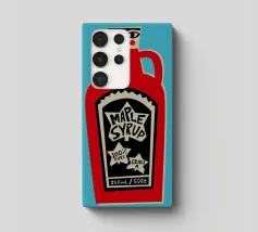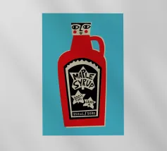 Una simpatica illustrazione di un condimento a base di sciroppo d'acero, con un simpatico musetto a dargli vita.