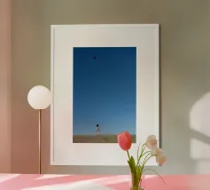 Onde delicate si increspano su una superficie di vetro, riflettendo un cielo morbido nei toni del blu e della luce. L'orizzonte si estende ampio e aperto, evocando pace, chiarezza e il ritmo lento della natura. Minimale e serena, quest'opera d'arte invita a respirare profondamente, a pensare con calma e a godere del comfort senza tempo del mare.