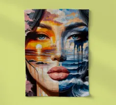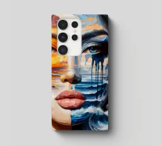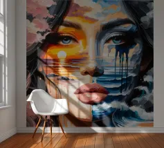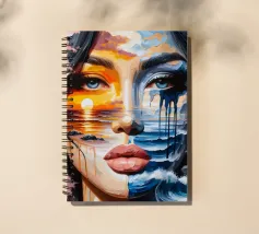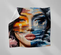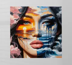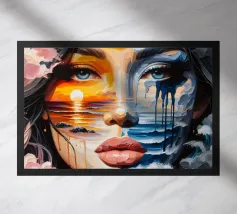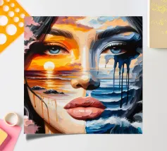 Pittura di paesaggio marino Di donna, onde e tramonto.
