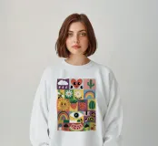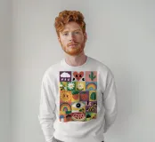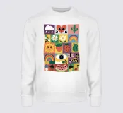 Un motivo allegro e giocoso di varie icone simpatiche e colorate, tra cui arcobaleni, cactus, occhi e frutta. Il mix eclettico crea un disegno divertente, energico e stravagante.
