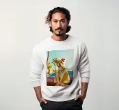 Sotto il sole cocente di Palm Springs, Milo, con le braccia tatuate, cammina silenziosamente lungo la strada deserta, con l'accappatoio scuro che gli svolazza intorno. I suoi piedi nudi sbattono contro il marciapiede caldo, lasciando impronte nella sabbia. Milo respira profondamente l'aria secca e profumata, con i capelli in disordine. Socchiude gli occhi per proteggersi dal bagliore accecante del sole. Si ferma un attimo, ascoltando il ronzio degli insetti e il fruscio delle foglie di palma. Un sorriso gli sfiora le labbra, mentre si sente in sintonia con l'atmosfera rilassante.