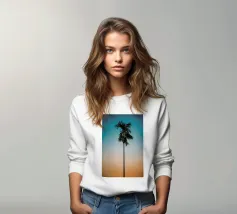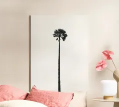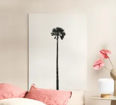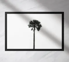 Questo motivo minimalista a forma di palma in bianco e nero dona serenità tropicale a qualsiasi ambiente. La palma solitaria su uno sfondo chiaro trasmette una sensazione di libertà e di estate e si adatta perfettamente a un arredamento moderno e minimalista. Ideale come murale, cuscino o cover per cellulare, questo disegno aggiunge un tocco di esotismo e relax a qualsiasi stanza. Per tutti coloro che desiderano un'atmosfera tropicale nella propria casa e apprezzano la semplice eleganza.