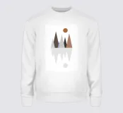 Le forme geometriche formano un paesaggio montano minimalista, con un cerchio in alto che ricorda il sole. Sotto è raffigurato un riflesso invertito delle cime, che crea un disegno simmetrico.